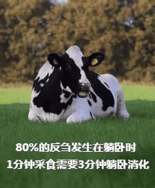 奶牛80%以上反刍时间集中于躺卧阶段,其他反刍时间发生在挤奶、采食和饮水活动之间中午休息的时候。